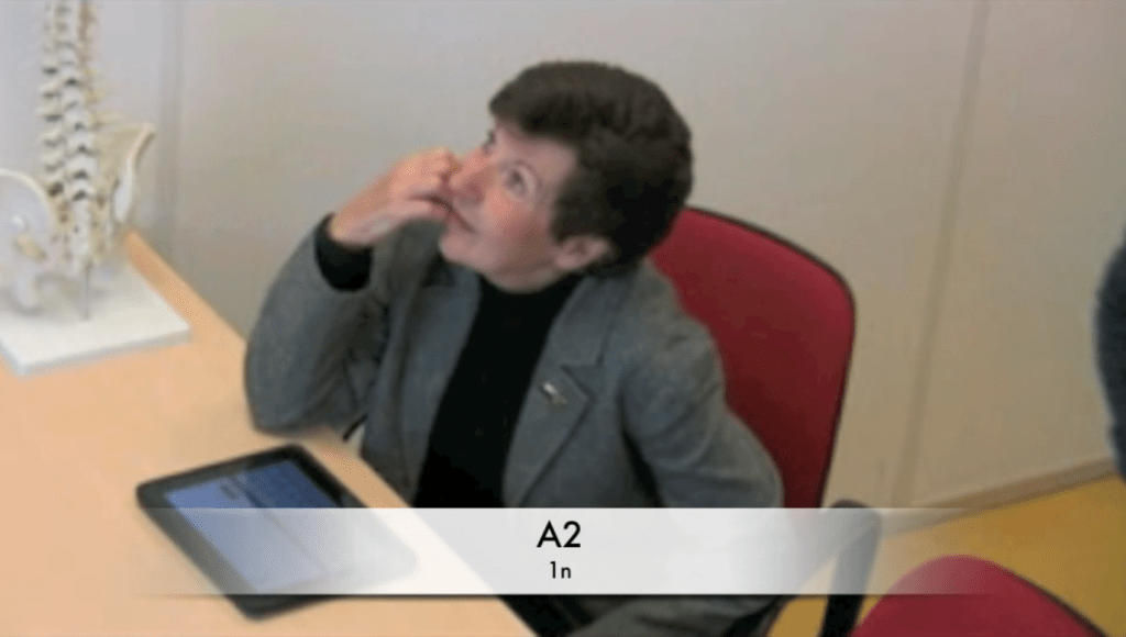 ESTHER 1.2. A female character was used to host the tool, triggering the questions and guiding the patient through the application in a friendlier looking way (based on the Pictorial Mood Reporting Instrument, PMRI.