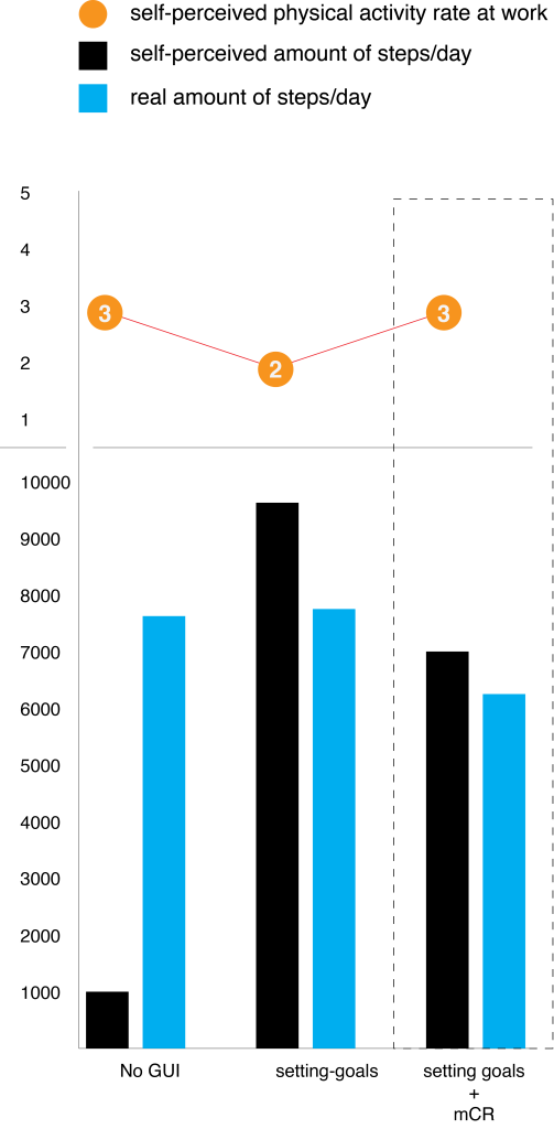 ESTHER 1.3 as subsequent design iteration, explored the value of self-reporting prompting as a reflective mechanism in a different scenario. It aims to support knowledge workers in the context of physical activity during working hours through self-reflection. This tool implemented the concept of “micro-Cycles of Reflection (mCR)” (Jimenez, 2015) to activate patients in the phases of integration and reflection when applying the staged-model of Personal Informatics (PI) (Li, 2010).